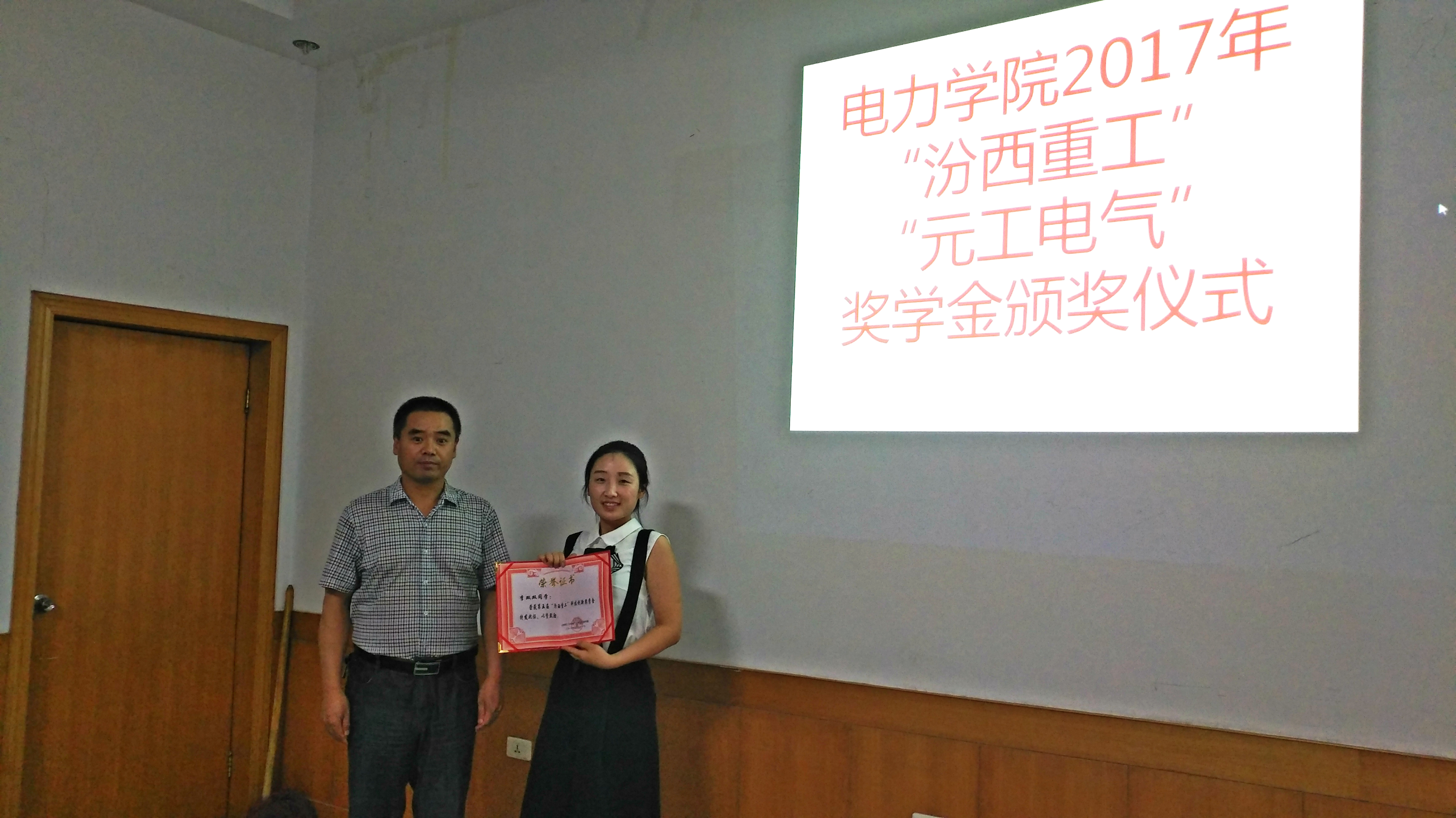 6月22日下午,我院在学院会议室举行“汾西重工”科技创新奖学金和“元工电气”工程教育奖学金颁奖仪式,院党委书记赵惠民为获奖学生颁奖,院学工办主任杨振东主持颁奖仪式。