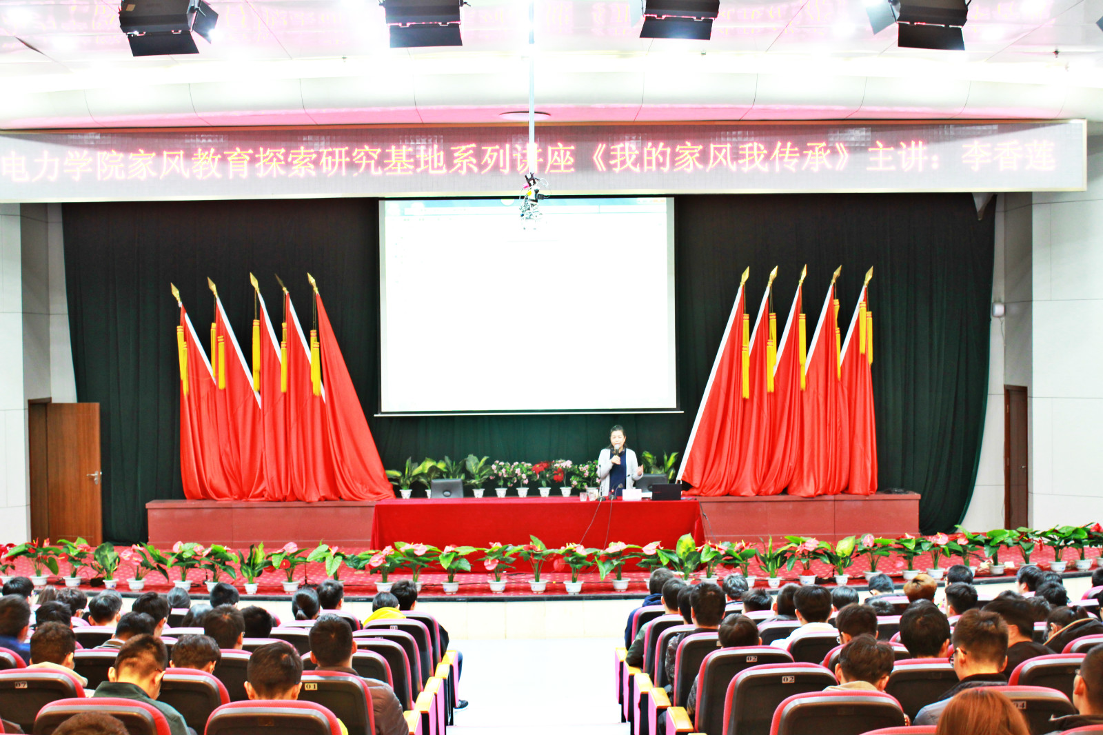 11月21日晚,应我院家风教育探索研究基地的邀请,曾荣获山西省“维护职工合法权益卫士”称号、山西省“五一劳动”奖章的李香莲老师在我校博学楼报告厅为电力学院学子作了一场精彩的家风教育讲座。